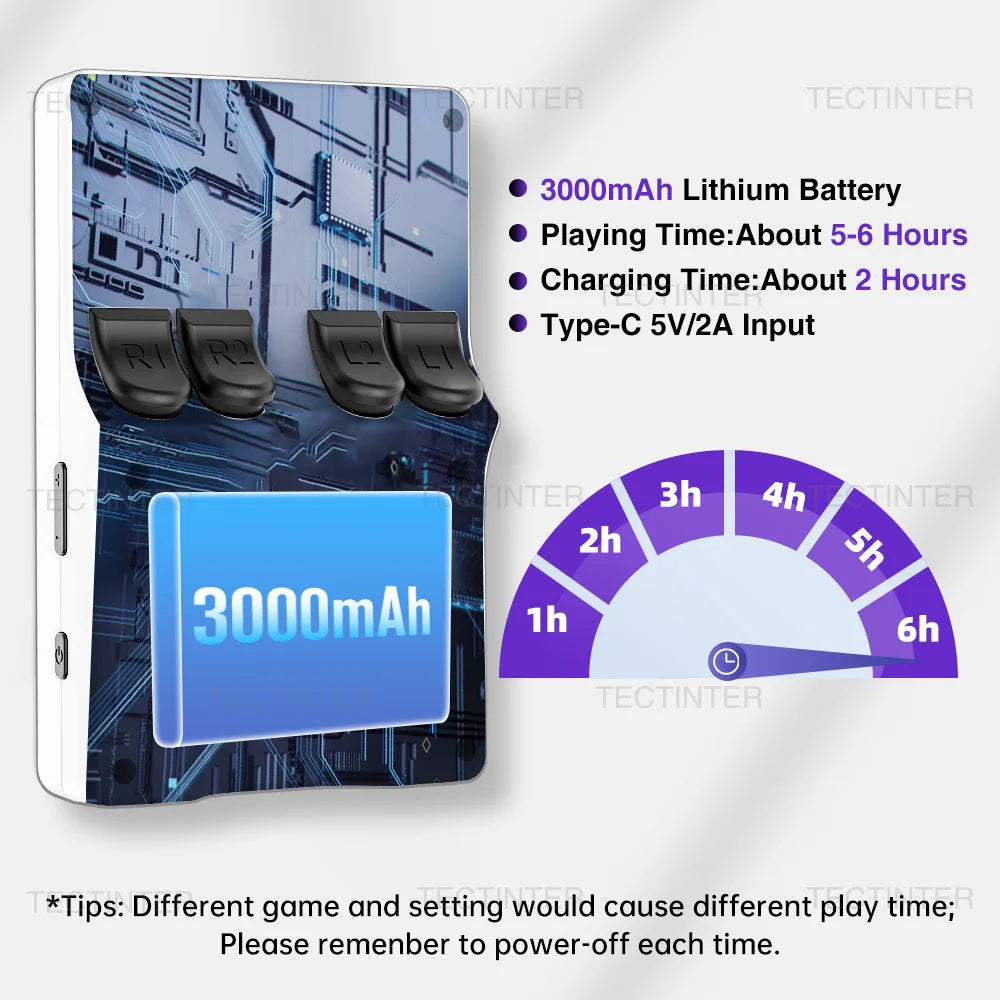 Para aproveitar todo o potencial da consola, é possível adicionar um cartão TF de até 1 TB, expandindo o armazenamento para milhares de títulos e ficheiros multimédia.